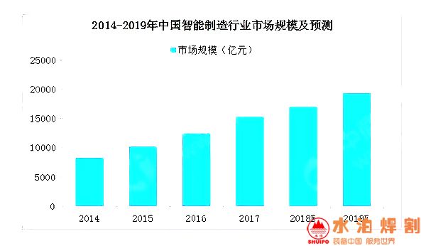 在國家政策推動,制造業技術轉型升級等背景下,中國智能制造產業發展迅速,對產業發展和分工格局帶來深刻影響。數據顯示,2017年中國智能制造行業市場規模為15150億元,增長率為22.6%,伴隨著技術的逐漸完善,應用產業的不斷拓展,市場規模將持續增長,預計2019年市場規模將超19000億元。